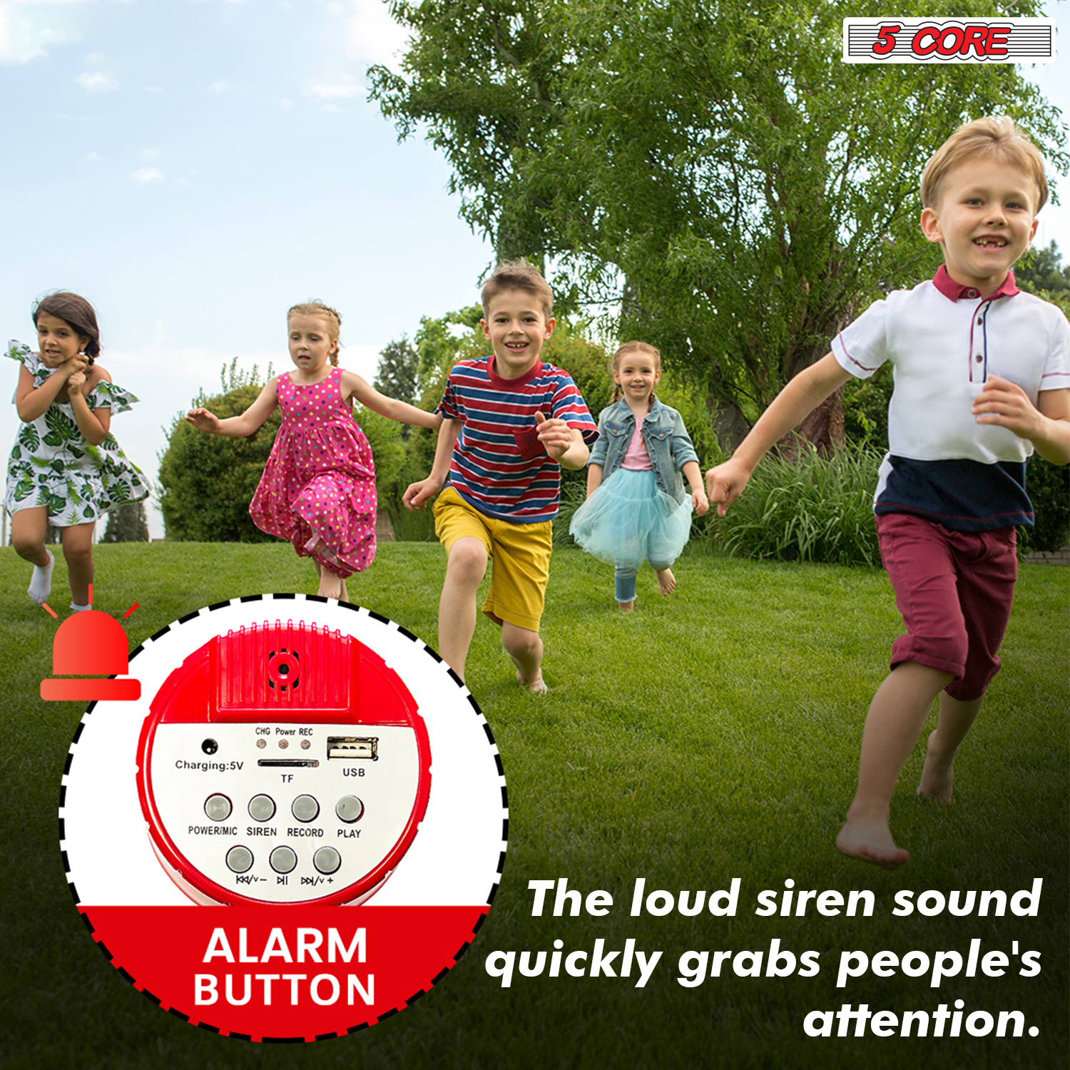 5 Core megaphone speaker mini bullhorn, designed to make your voice heard with clarity and precision! Delivers a robust 30W of power, ensuring your message carries across any crowd. Easily adjust the volume to suit your needs and record up to 8 seconds of your speech for repeated playback. Activate the alarm/siren mode for emergencies or attention grabbing situations. The built-in mic in the portable megaphone offers versatility in sound projection. With an impressive 800 yards voice projection range, rechargeable megaphone bull horn, battery (included), this powerful product is your ultimate communication tool for any event or occasion. |
