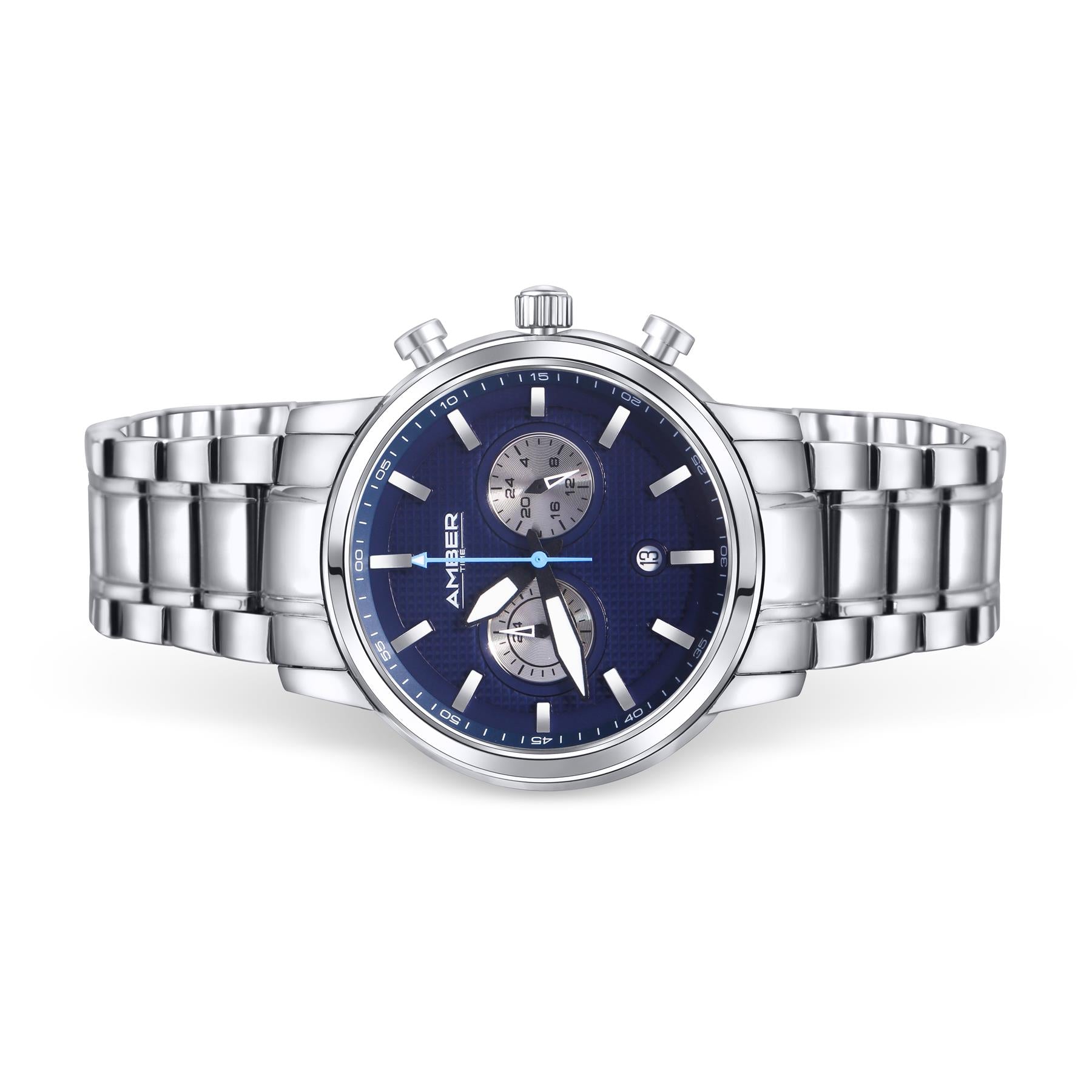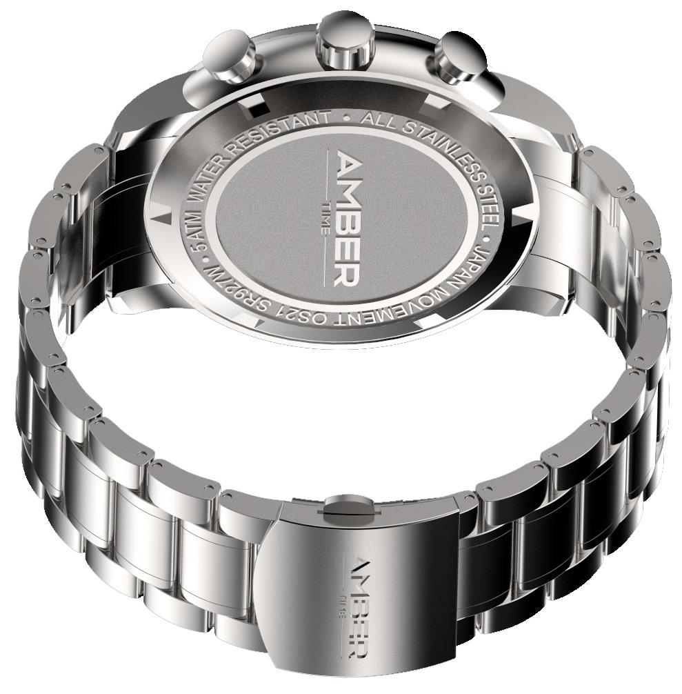 Amber Time Men's Quartz Chronograph Watch Stainless Steel Band 50m
