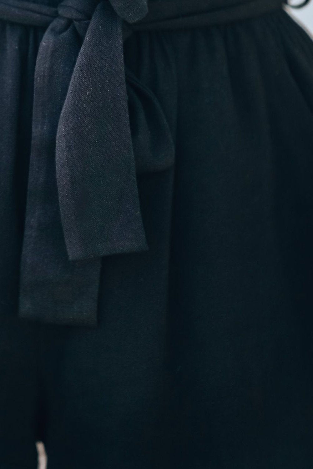 •Finished with a waist tie and a full lining