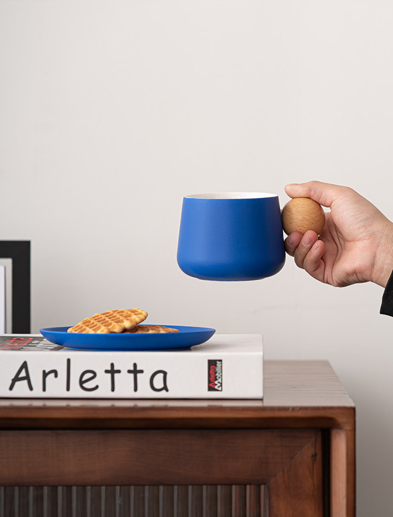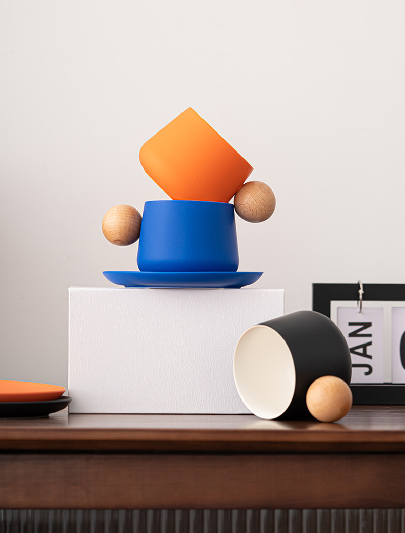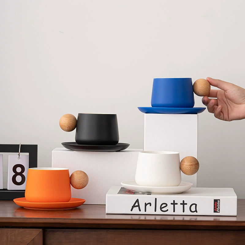 Add a playful touch of modern design to your daily coffee ritual with this Minimalist Ceramic Coffee Cup & Saucer Set, featuring a distinctive natural wooden ball handle. Combining sleek form with functionality, this set is both an eye-catching décor piece and a practical vessel for your favorite drinks.