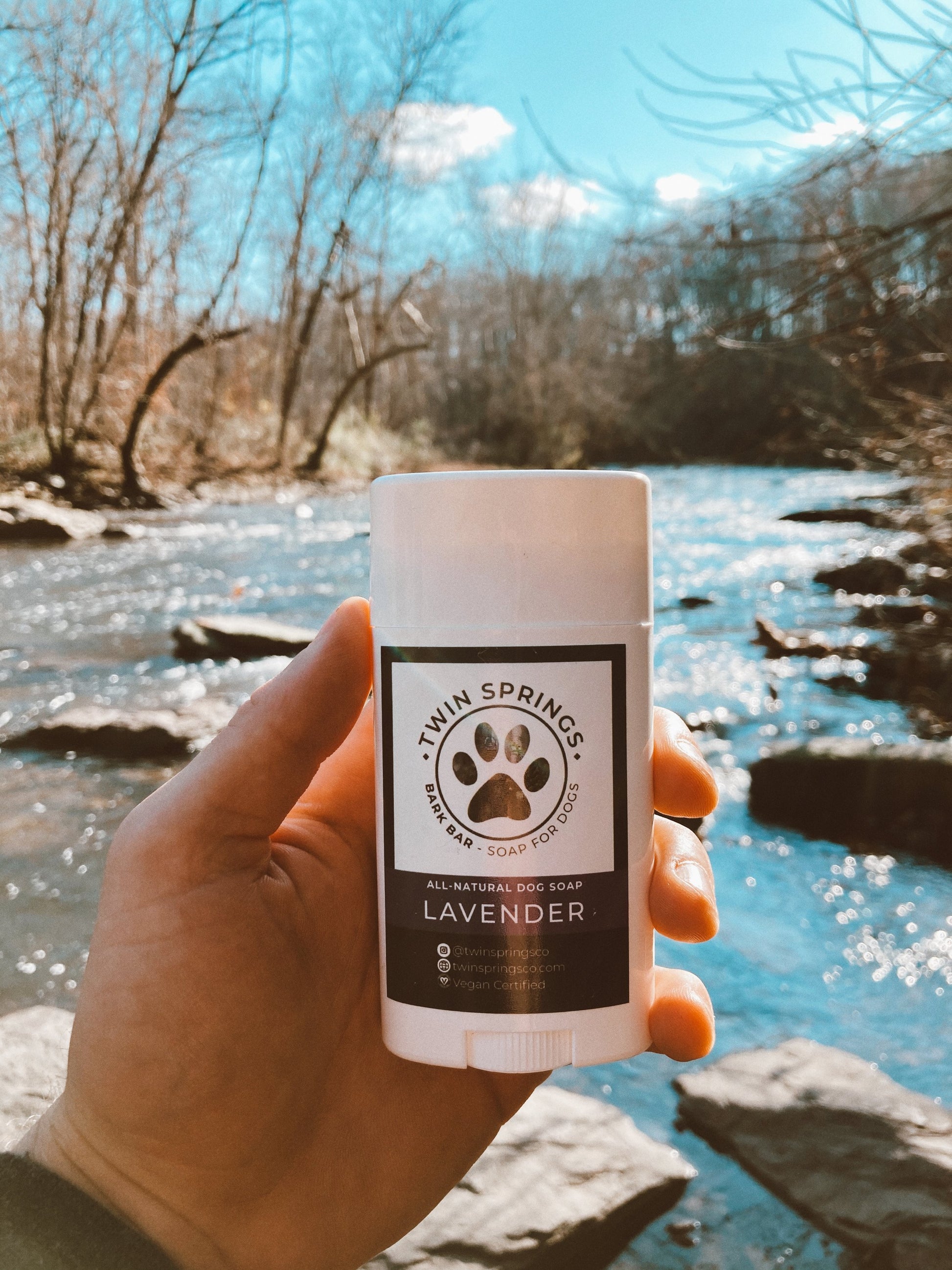 Enjoy your next adventure with your furry best friend using Twin Springs Lavender Bark Bar! Handcrafted from scratch, Lavender Bark Bar includes saponified oils of Coconut, and Olive! We craft our soap into the travel container using the cold process approach, preserving the beneficial properties of these organic oils making our soap gentle, soothing, and keeping the fur super soft! Perfect for traveling, camping, backpacking, hiking, or any event when life is on the go! Enjoy the generous, bubbly lather for the full coat! It's the perfect natural way to stay clean!