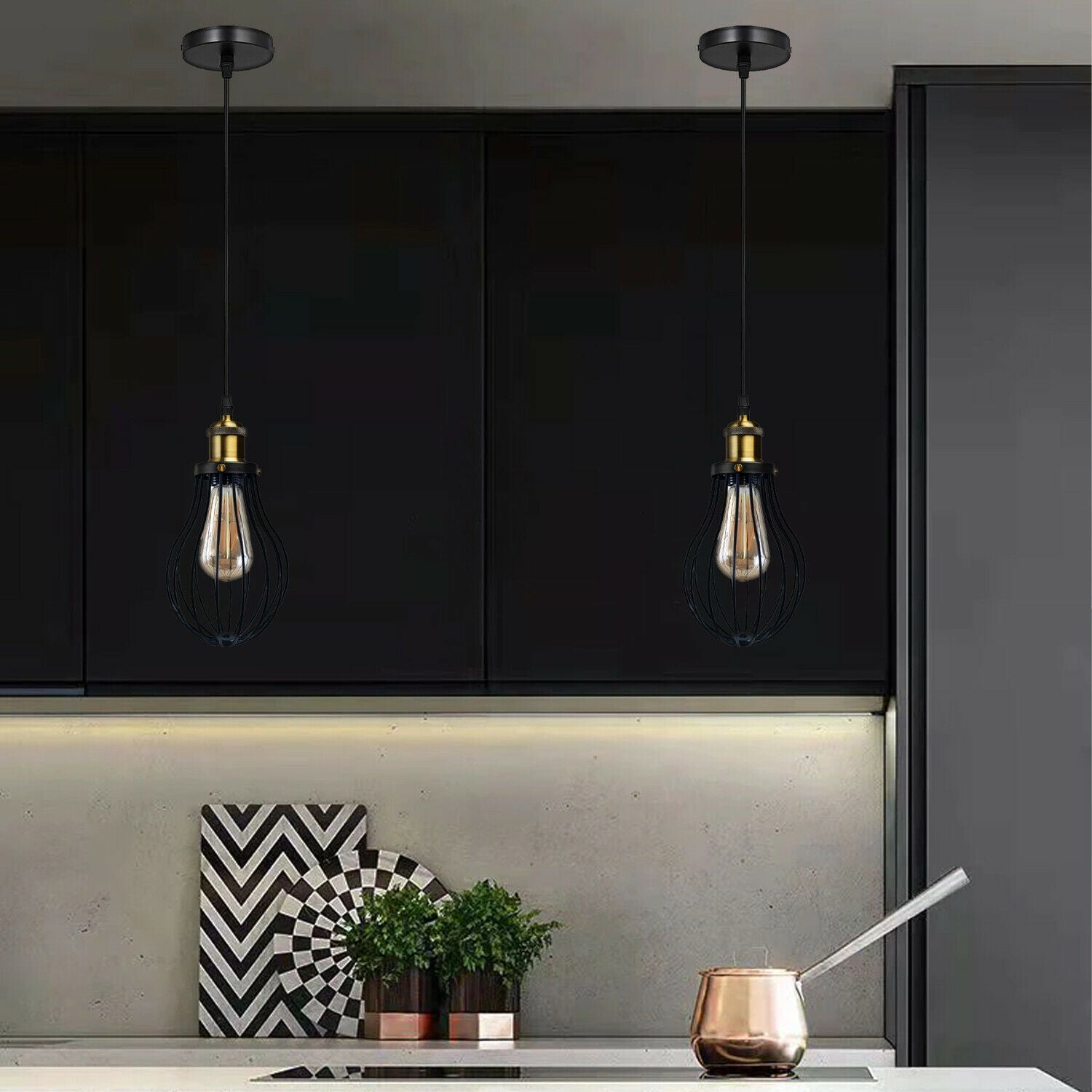 Modern Vintage Industrial Black Metal Wire Cage Loft Pendant Lamp