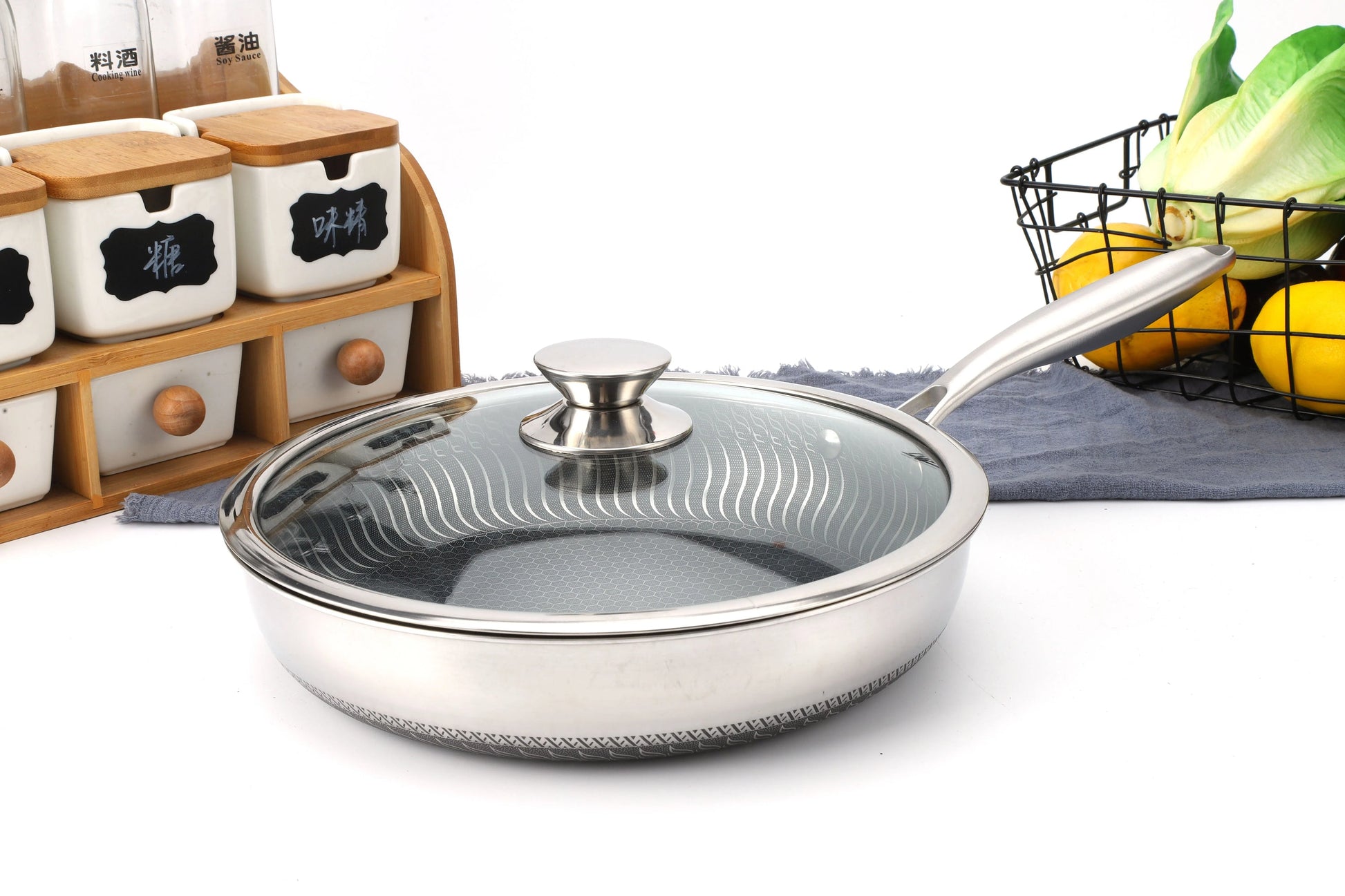 Premium 26/28cm Stainless Steel Frying Pan – Food Grade 304 Non-Stick