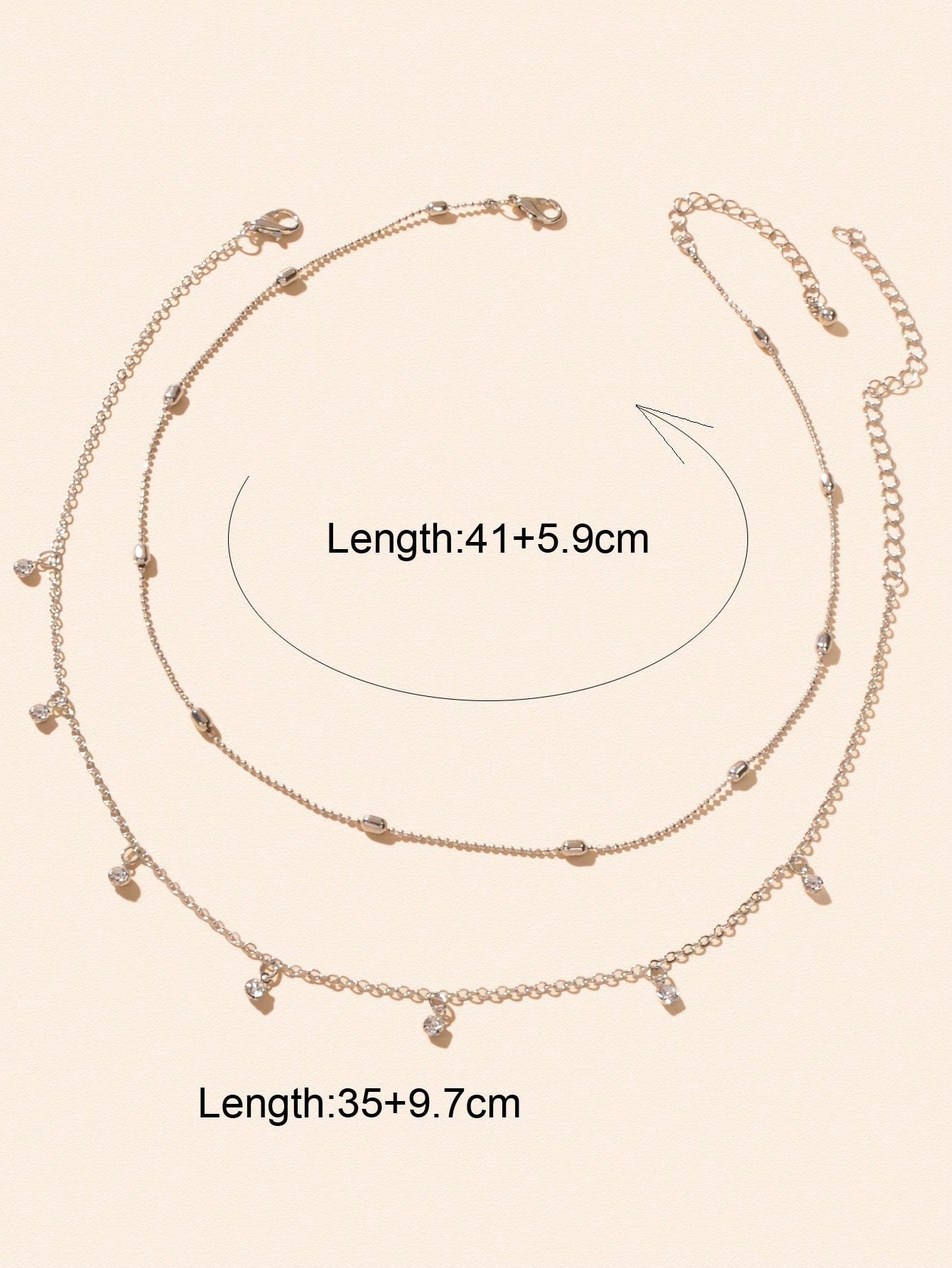 Sparkling Diamond Pendant Double Layer Silver Necklace Elegant