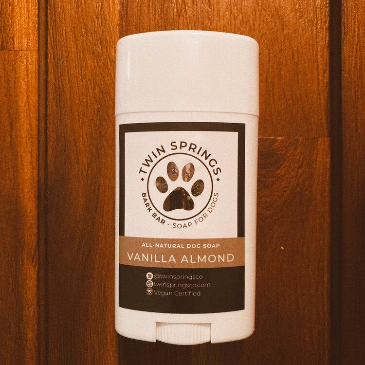 Enjoy your next adventure with your furry best friend using Twin Springs Vanilla Almond Bark Bar! Handcrafted from scratch, Vanilla Almond Bark Bar includes saponified Sweet Almond Oil! We craft our soap into the travel container using the cold process approach, preserving the beneficial properties of these organic oils making our soap gentle, soothing, and keeping the fur super soft! Perfect for traveling, camping, backpacking, hiking, or any event when life is on the go! Enjoy the generous, bubbly lather for the full coat! It's the perfect natural way to stay clean!